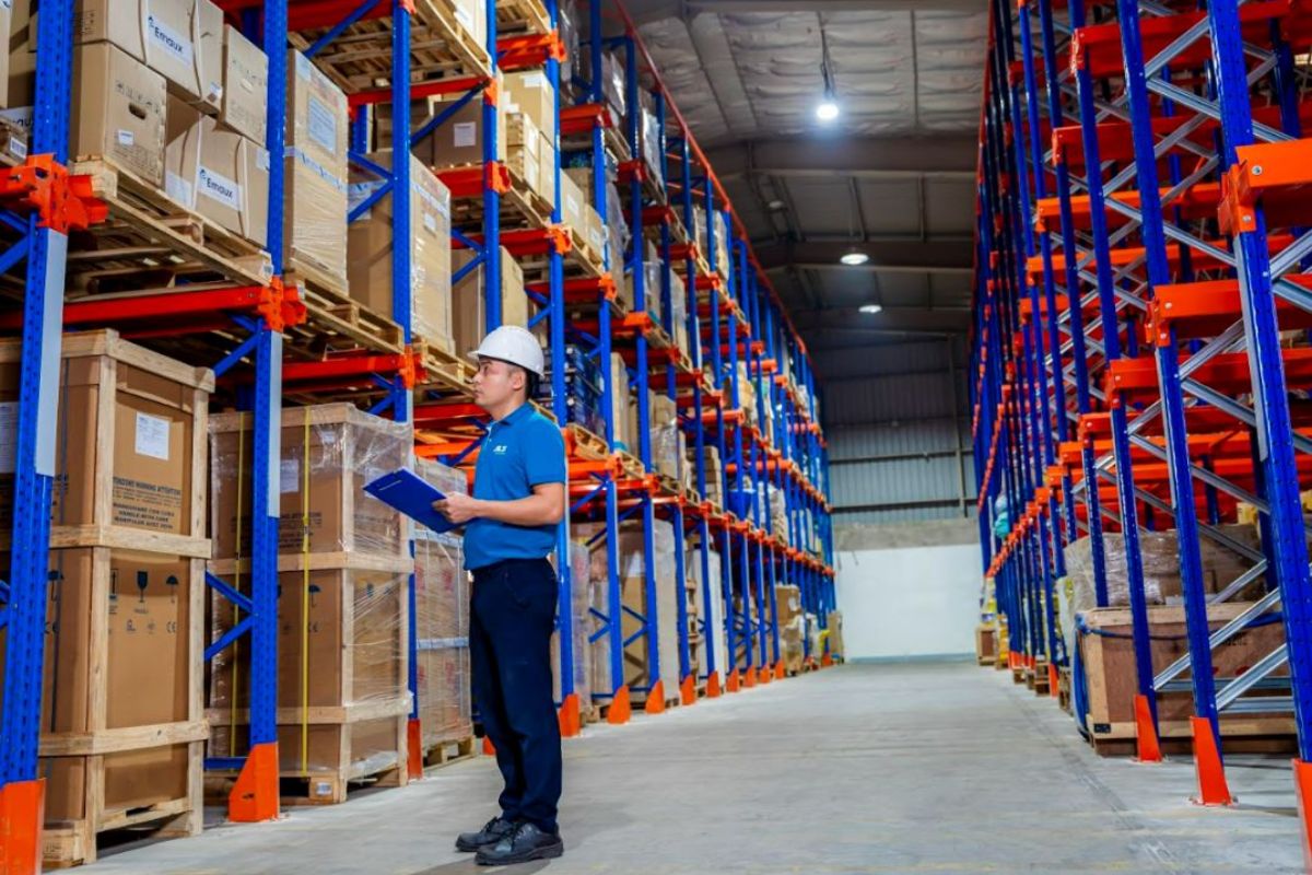 - Khu vực 1: Công trình 02 tầng có diện tích mỗi tầng là 320m2 được sử dụng để làm việc và chứa hàng hóa là hàng thực phẩm khô, mát và hàng đông, bao bì đóng gói sẵn bằng thùng carton, thùng thiếc hoặc can nhựa.